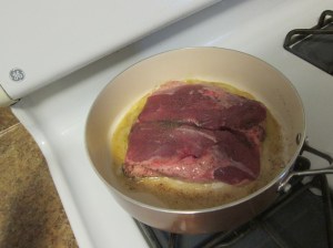 Place the pan in the oven and cook 8-10 minutes, for medium rare, or longer as desired. (I went with 10 minutes and it was right for me.)