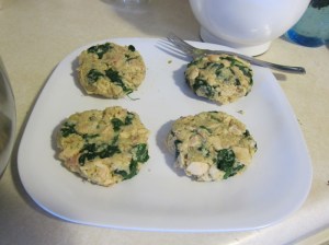 Some really easy patties that taste great and seem like they’re probably decently healthy. I quite liked the texture of these – sort of creamy inside (although if that sounds gross to you, just ignore it, there’s probably a better word to use there…). I’ll definitely be making these again, and why not, they come together so quickly!