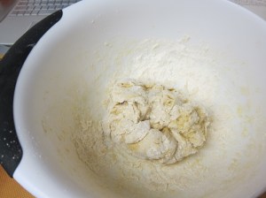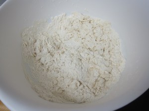Using your spoon, draw the flour into the water to combine.