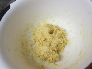 Add the butter and oil, and beat until the mixture is smooth and silky. At this point, I actually had to just start working the mixture by hand.