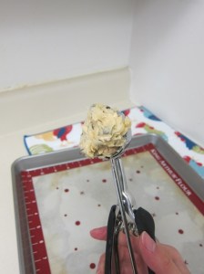 Scoop into roughly 1 1/2 tablespoon sized balls on the lined sheets (I used this medium sized cookie scoop).