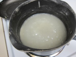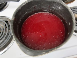 Place over medium high heat and bring to a boil, then remove from the heat and whisk in the jello powder.