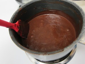 Place the chocolate chips in a medium saucepan and heat over medium-low heat, stirring occasionally until fully melted.