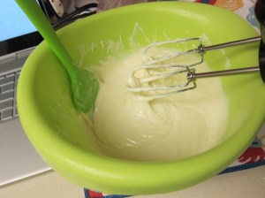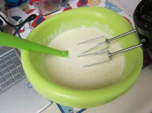 Beat in the evaporated milk and cream until fully combined.