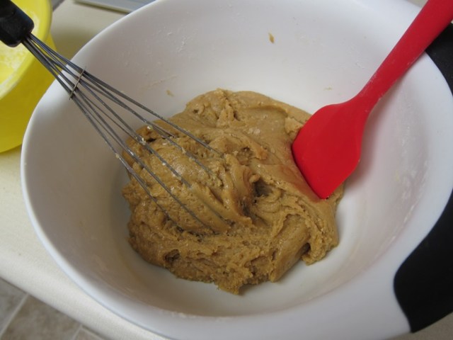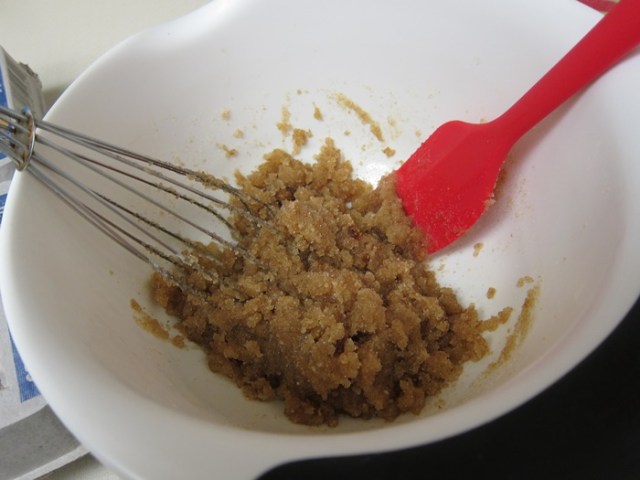 In a large bowl, whisk the browned butter and the granulated and brown sugars together.