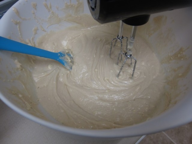 Add the egg whites and beat a further 2 minutes, then pour into the prepared pan.