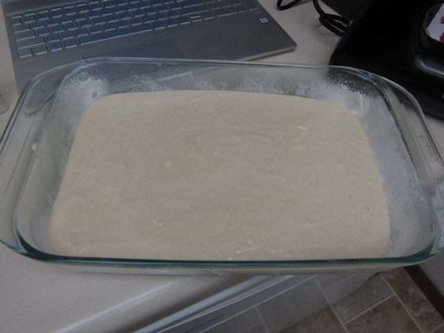 Bake 30-35 minutes, until it passes the toothpick test. Mine was clearly jiggly and uncooked at 30, but browned and nicely baked at 35. Set aside to cool in the pan for 15 minutes.