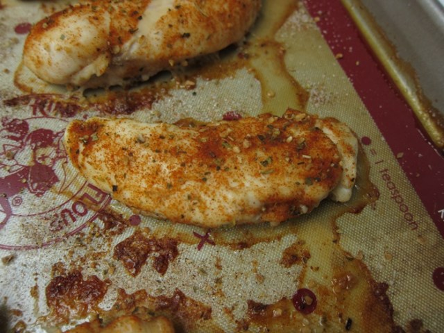 You…stir all those spices together, and then, for smallish chunks of chicken like that, coat the meat and bake for 30 minutes at 350. Easy enough! Coat everything with it!