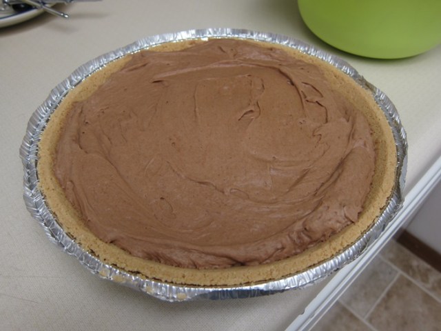 Pour gently into the graham cracker crust, cover, and place in the freezer for 3 hours, or fridge for 6.