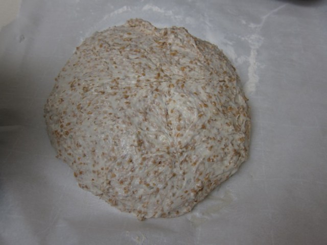 I was recently given some spelt bran, a mystery ingredient as far as I’m concerned. It wound up making a bread with a very firm crust, and a nice fluffy inside. It’s a no-knead bread, so the hands-on time is very low, and the reward is high!