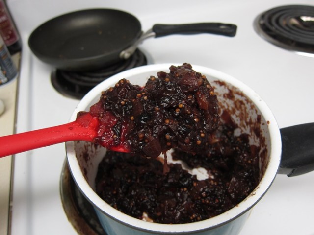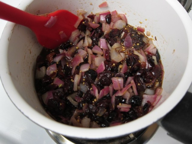 Meanwhile, place the red onion in a saucepan and cook over medium heat until translucent and softened. Once softened, stir in the drained cranberries and remaining chutney ingredients. Reduce heat as needed and simmer the mixture, stirring occasionally, until the mixture has significantly reduced and is thick – if you draw a spatula through it, liquid should not immediately run back in and cover the bottom of the saucepan. This will take anywhere from 30 minutes to an hour, depending on the heat and size of your pot. Set aside to cool.