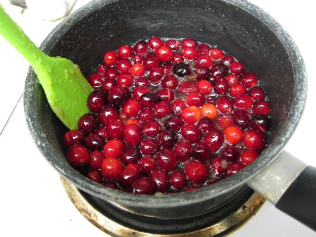 Stir the flour mixture into the cranberry mixture, then spoon the filling into the shell.