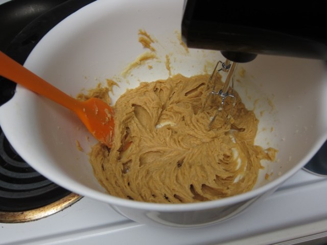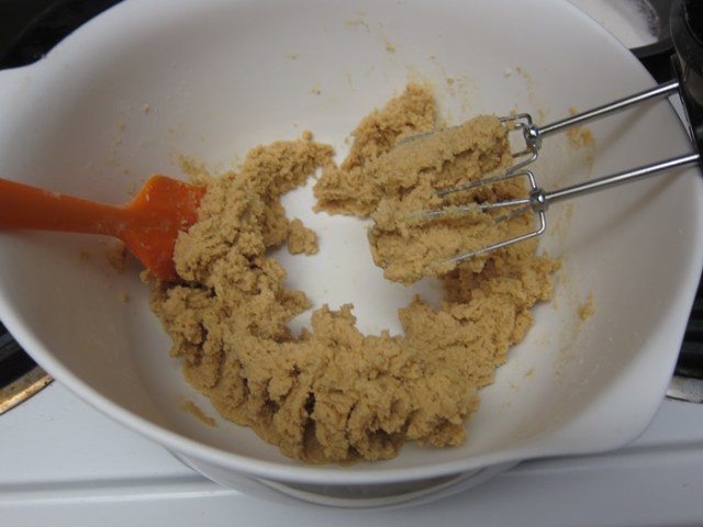 This would no doubt be easier with a stand mixer and the paddle attachment than with a hand mixer, but we work with what we’ve got!