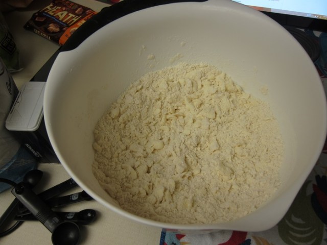 In a large bowl, combine the flour and salt, then cut in the butter with knives, a pastry cutter, or your hand until the mixture resembles coarse crumbs.