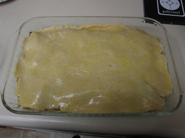 Roll out the remaining piece of dough large enough to cover, and place over the apple mixture. Beat the egg white and brush over the top crust.
