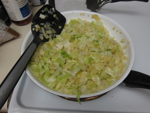 Add the cabbage and water, adding by handfuls rather than all at once.