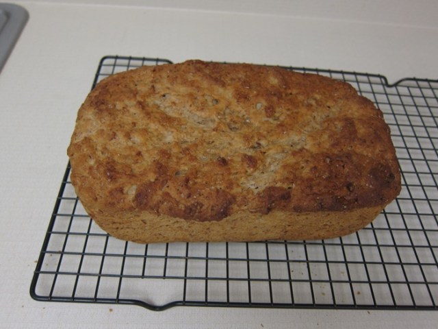 Remove from the pan and cool on a cooling rack, ideally at least 2 hours – warm bread releases a lot of steam when cut, which negatively impacts the texture, so letting the bread cool fully helps create a better bread.