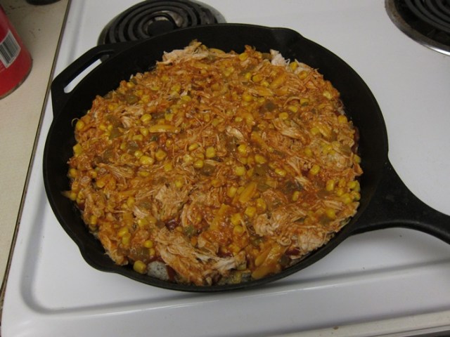 Spread the chicken mixture over the cornbread.