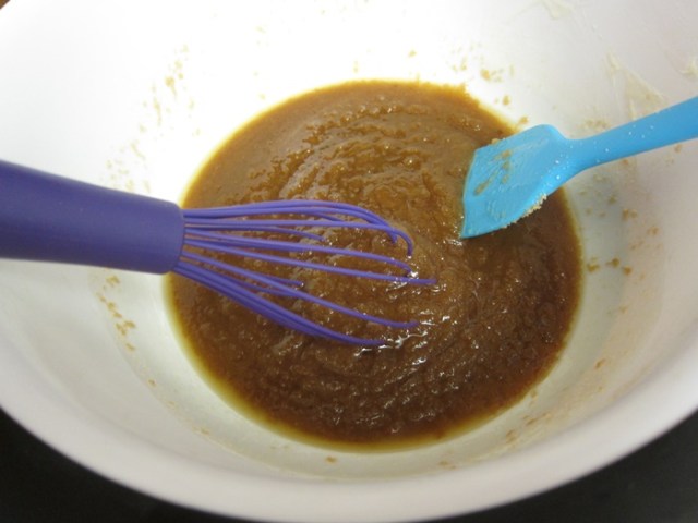 In a large bowl, whisk together the melted butter and the brown sugar.