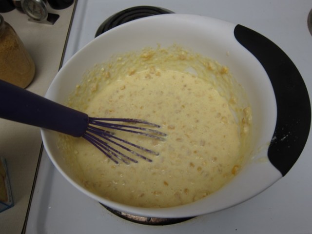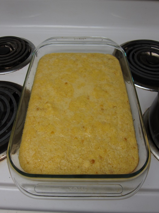 The recipe calls for 1 can of creamed corn and one of sweet corn. I canned A LOT of creamed corn at work at some point, which is sort of somewhere in between the texture of what you’d get from regular/commercial creamed and canned corn, so I have just been using two cans of my own creamed corn.