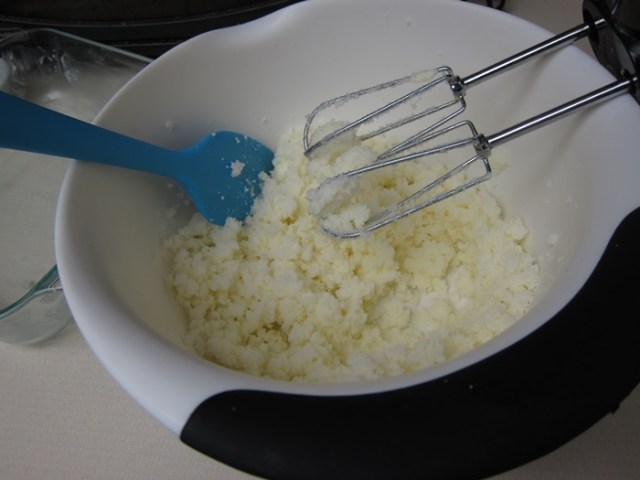 Beat in the eggs one at a time.