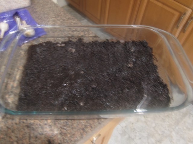 - 1 1/2 cups crushed Oreos (I used a food processor, you can also put them in a ziplock and hit with a meat tenderizer/anything solid)