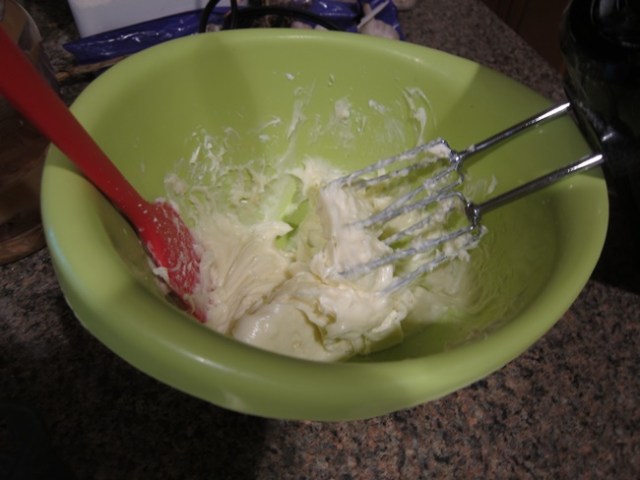 To make the filling, first beat together the cream cheese and powdered sugar.