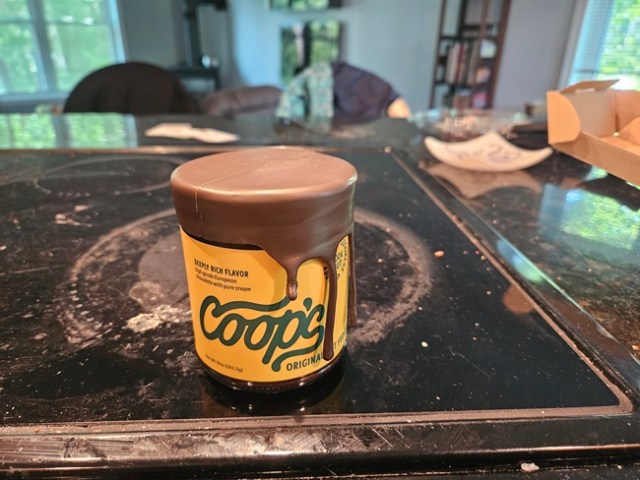 Once each batch is nearly frozen, add half the chocolate sauce, and 1 large handful of Golden Grahams (or save the cereal to add as a topping). Store in the freezer until ready to enjoy.