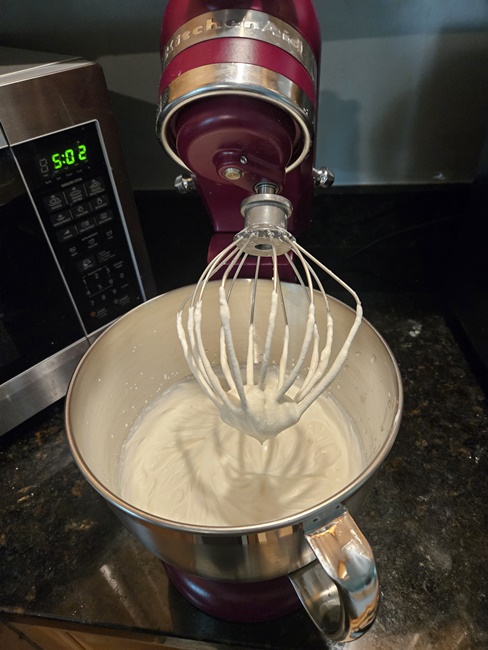 While the marshmallow mixture cools, beat the cream until it reaches the soft peaks stage.