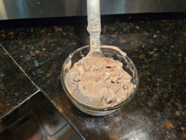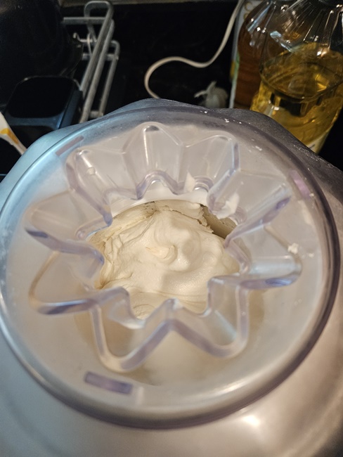 Freeze according to your ice cream maker’s instructions – for my mixer, it makes enough to take 2 batches.