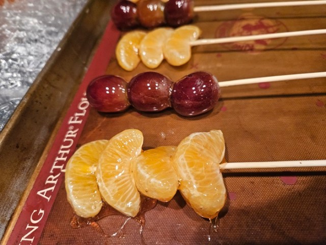I had friends over around the holidays and suggested making tanghulu, because I’d had the recipe bookmarked for a while. One of my friends had been seeing teens making it in the microwave and burning themselves recently, so that is possibly a thing, but we managed to make it with no injuries, and I quite enjoyed the result! You get a hard candy coating on the fruit(s) of your choice!