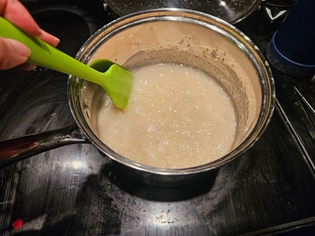 I used a medium saucepan because I wasn’t sure if the boiling sugar mixture would boil up huge, but it really didn’t, and a smaller pan would give you a smaller area, so the mixture would start off deeper, so small pan is the way to go.