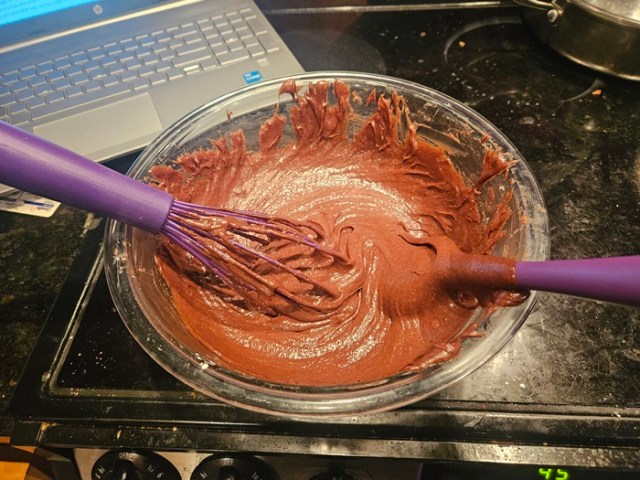 These were some good chocolatey brownies! When they were still hot from the oven, they were weirdly unsatisfyingly insubstantial feeling, but once cooled they were more dense and good!