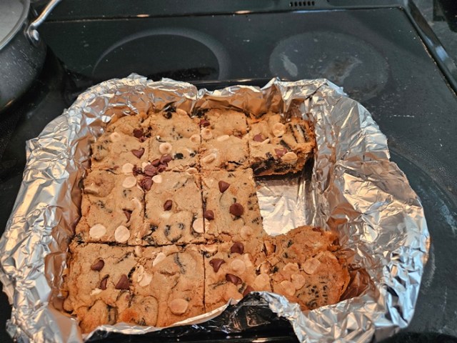 Top with some chocolate chips, if desired, then bake 25 minutes or until the bars pass the toothpick test.