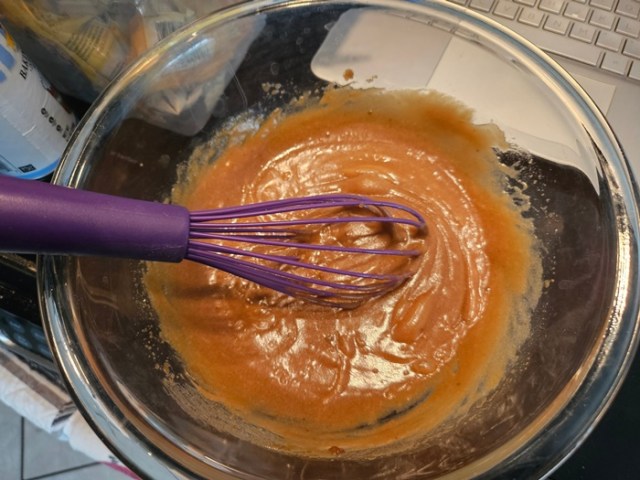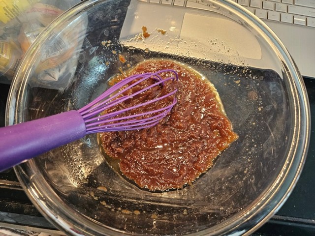 Whisk the butter and brown sugar together in a large bowl.