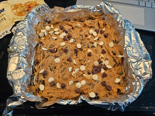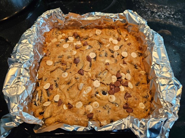 Top with some chocolate chips, if desired, then bake 25 minutes or until the bars pass the toothpick test.