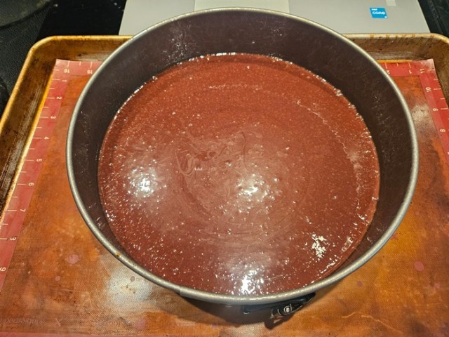 Pour into the cake pan and bake until it passes the toothpick test, 50-60 minutes.