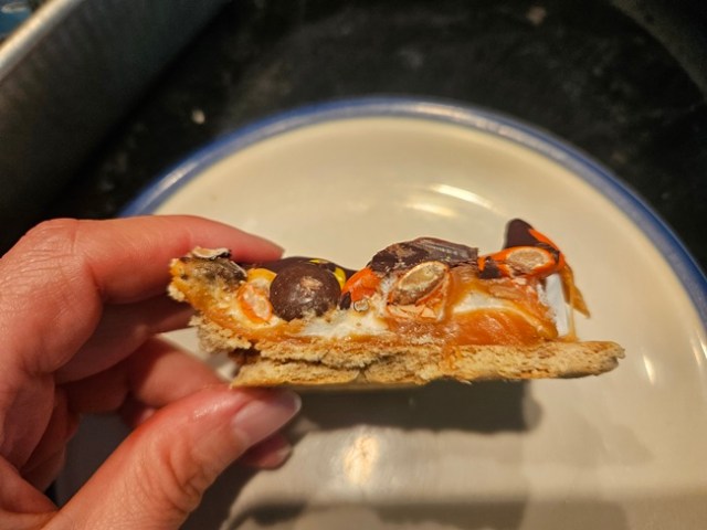 A good dessert to avoid turning on the oven! The original recipe for this called for a roughly chopped bag of Butterfinger Bites – I’m not sure those still exist, and certainly my store didn’t have them, but Reese’s Pieces were a delicious substitution!