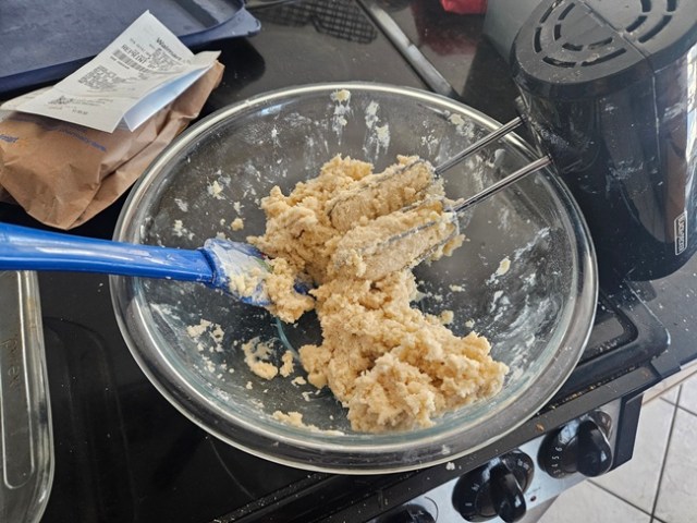 I beat together the dough and then realized that the cream I had was actually half-and-half, so threw the dough in the freezer for a few days until I’d gone to the store, let it thaw in the fridge for a day, and then proceeded.