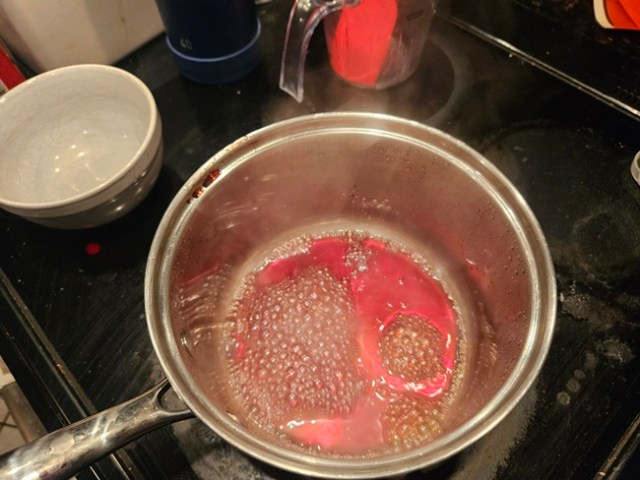 To make the berry caramel, boil the juice in a saucepan until it reduces down to 1/4 cup, 30+ minutes. That may feel like a super small amount, but it’s not a typo and does work!