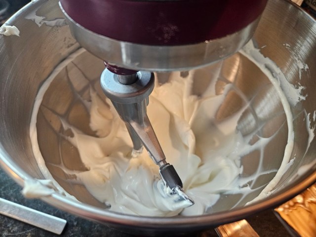 Meanwhile, beat the cream cheese with a mixer on high until smooth and creamy, about a minute.