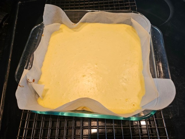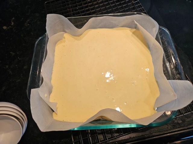 Bake 34-38 minutes, until still somewhat jiggly but not still liquid.
