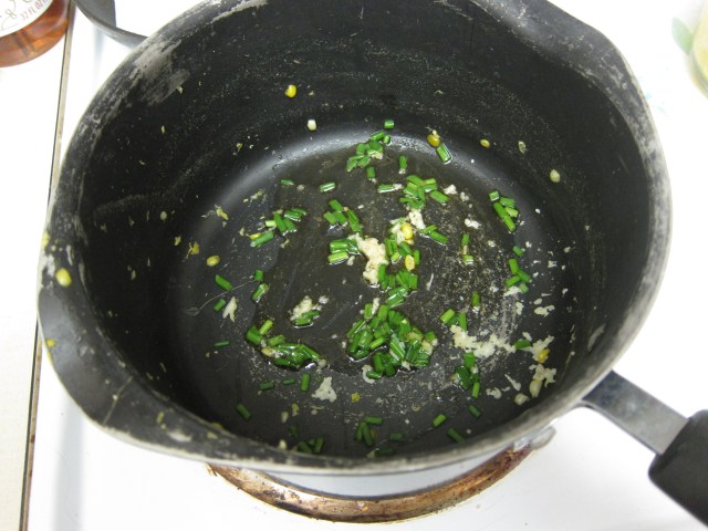 Heat the oil in a large, heavy-bottomed saucepan. Saute the green onions and garlic over medium heat for 1 minute until softened, not browned.