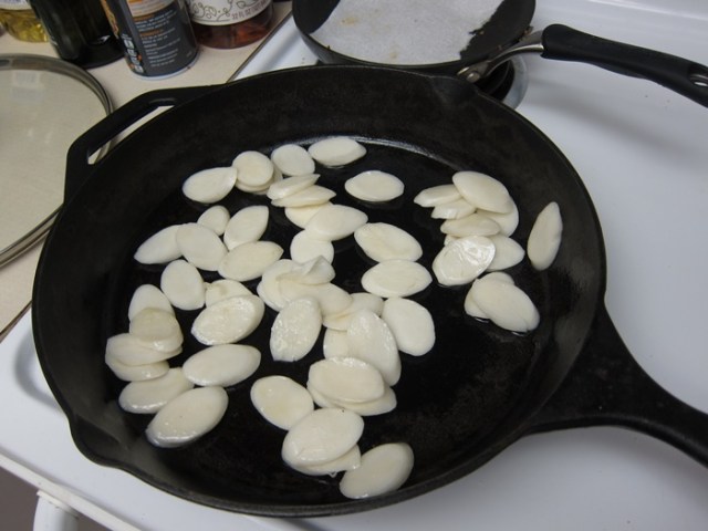 In a large cast-iron skillet, heat the remaining tablespoon of oil over medium-high heat. Add the rice cakes and cook until all the rice cakes are soft and chewy, 3-4 minutes, then remove from the pan to a bowl and set aside.