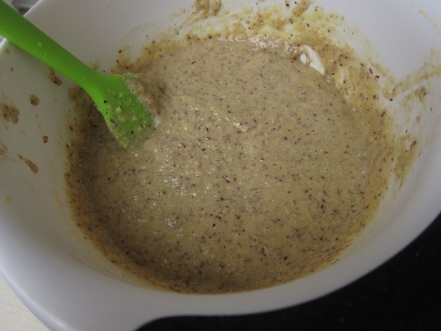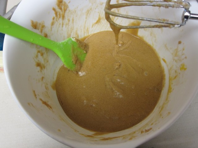 Add the flour mixture in 3 additions alternating with the apple puree mixture in 2 additions. Add the vanilla and beat until just evenly mixed.