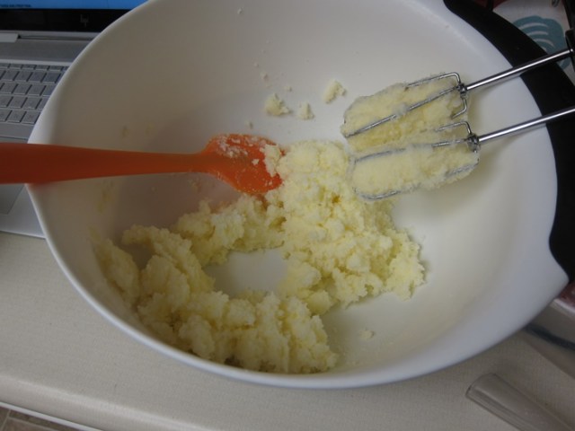 In a large bowl, beat the butter and sugar until light and fluffy.