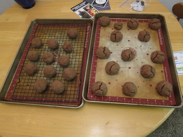 Using a silpat on the counter, I didn’t have to flour my work surface at all for this process. Bake the cookies for 8-10 minutes, until they start to get golden brown at the bottom edges. Let cool on the pans several minutes, then transfer to a cooling rack to cool completely. Keep your lined pans around – don’t wash them yet!