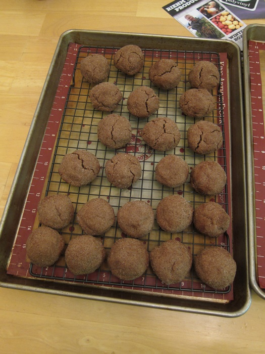 Roll the dough into individual balls – I used a medium-sized cookie dough scoop, but think slightly smaller might actually be better in the future. Roll each ball in the cinnamon-sugar mixture, then place on the lined sheets.