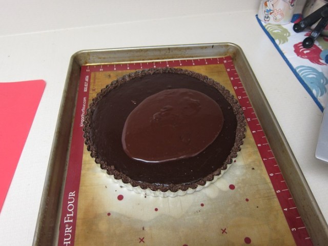 Pour the glaze into the center of the tart, then tilt it in all directions until evenly coated, then let stand another hour to set.