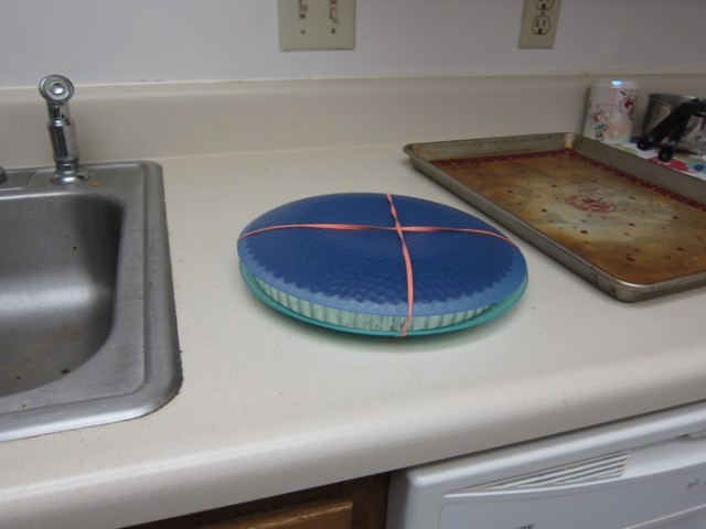 Cool completely. Straight out of the oven, it’s quite liquidy, but once cooled it firms up and can actually be safely transported as needed.